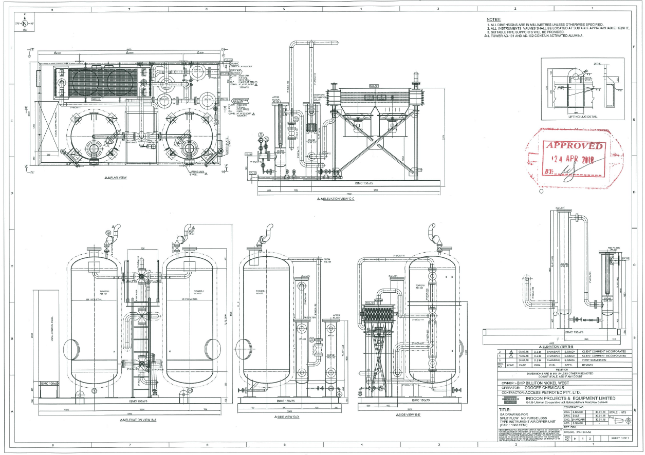 Access Petrotec carried out detailed engineering design in compliance with the latest AS1210 standards. Additionally, Access Petrotec created the equipment specification in compliance to BHP and Coogee Standards and Procedures
